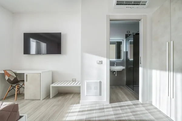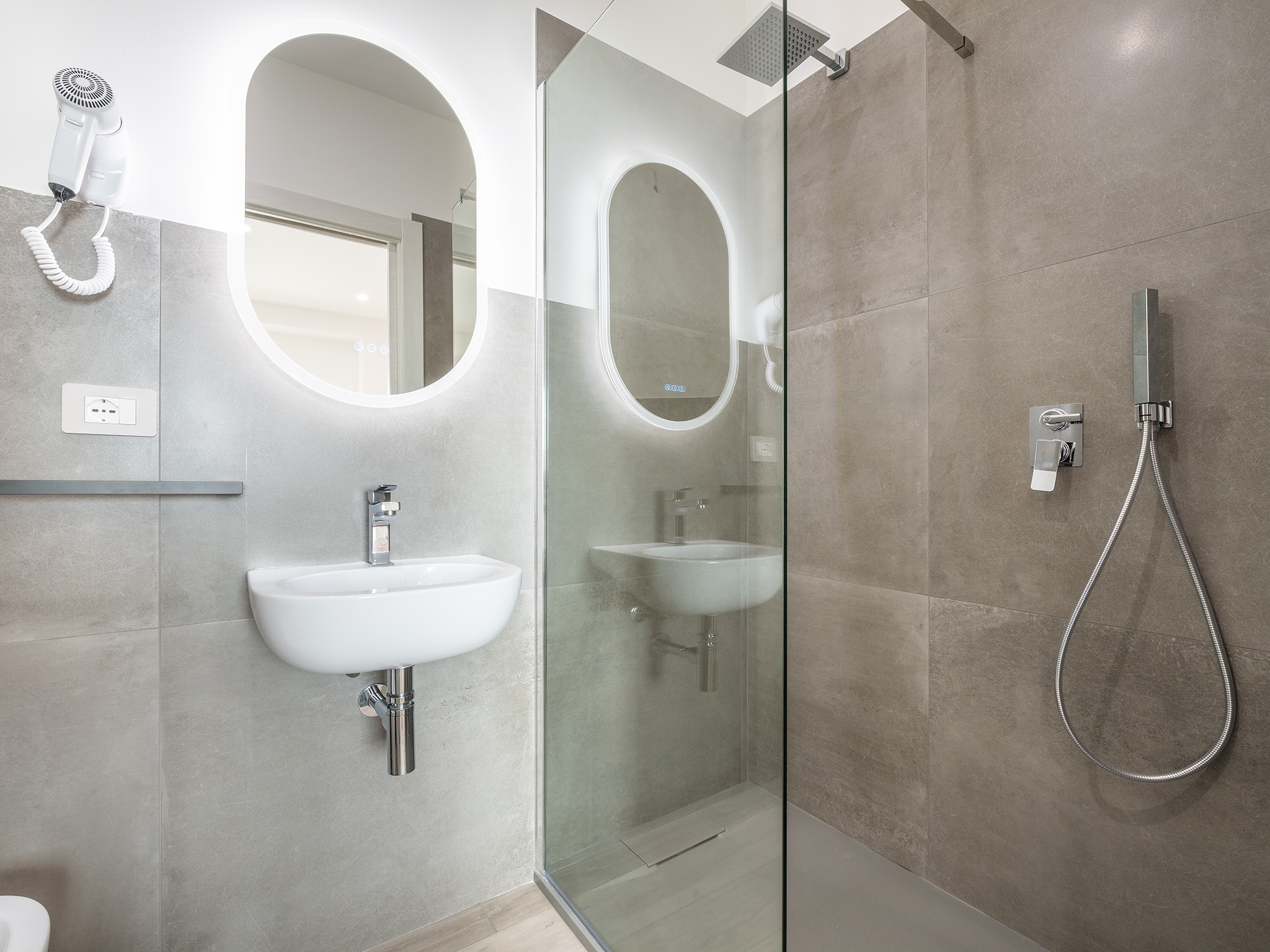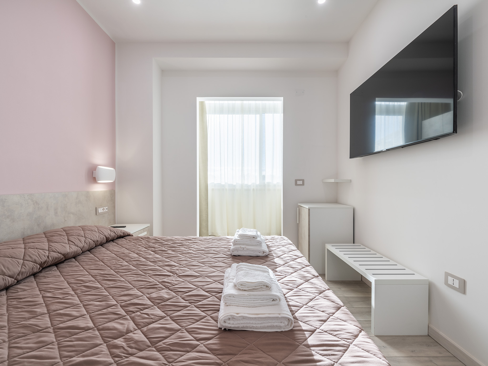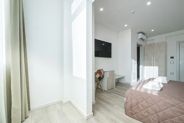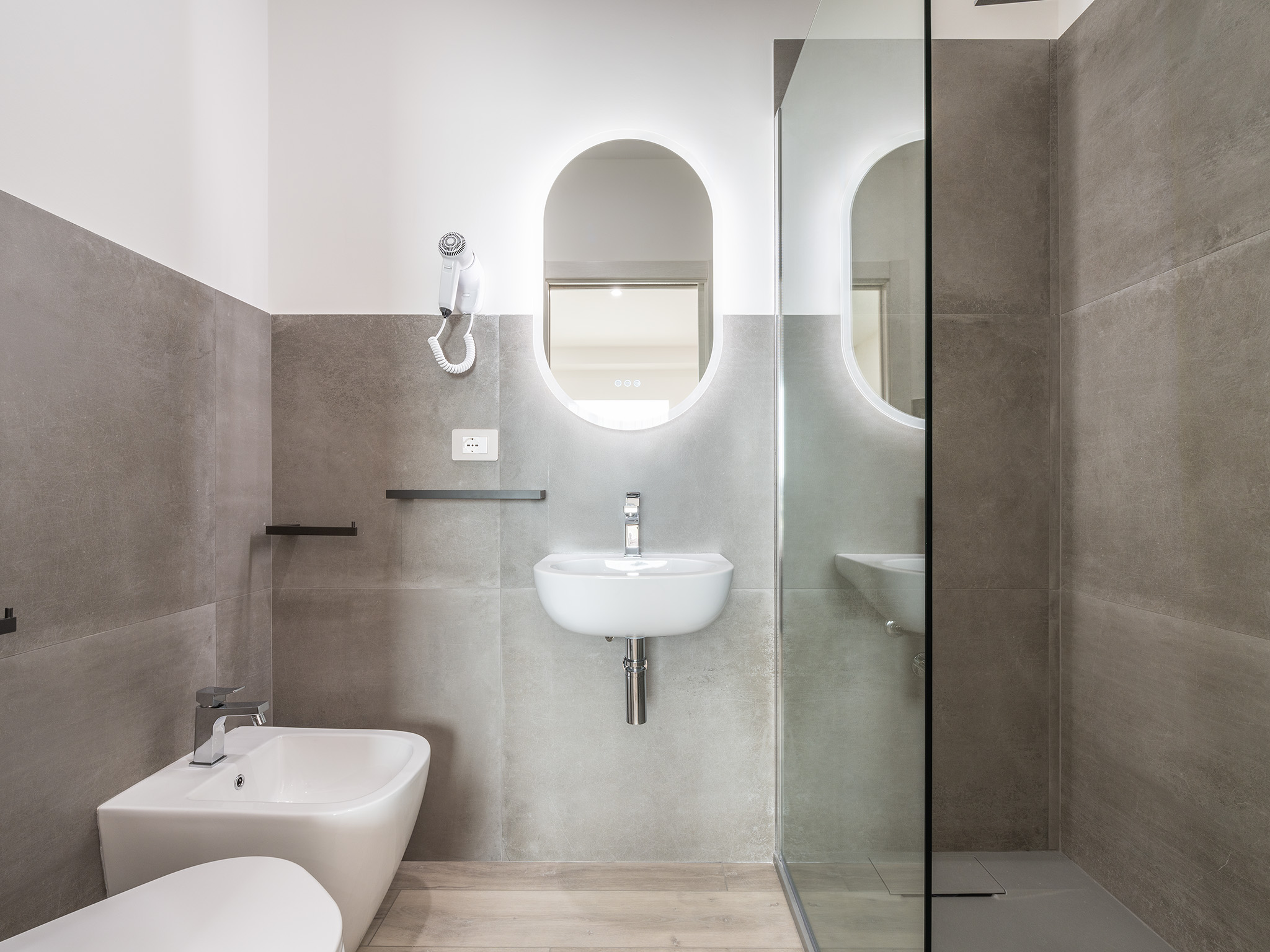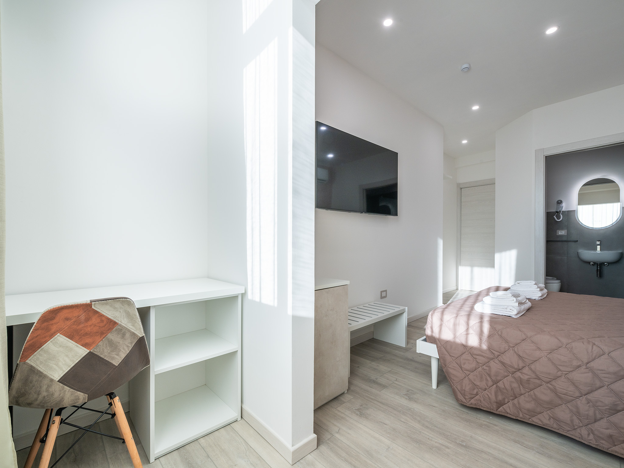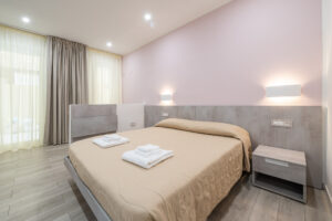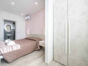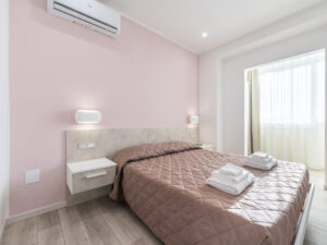 Camera matrimoniale dotata di bagno privato con doccia, bidet, asciugacapelli e set di cortesia. Dispone di aria condizionata, pareti insonorizzate, armadio, pavimenti in parquet e TV a schermo piatto. L’alloggio presenta 1 letto